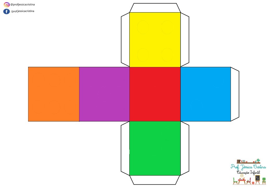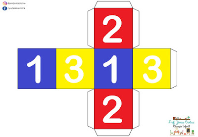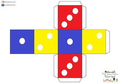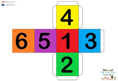 Confeccionei os dados em vários níveis, inclusive dados apenas de cores, para auxiliá-las em vários jogos e dinâmicas!! Coloquei todos os dados em um único arquivo para impressão:
