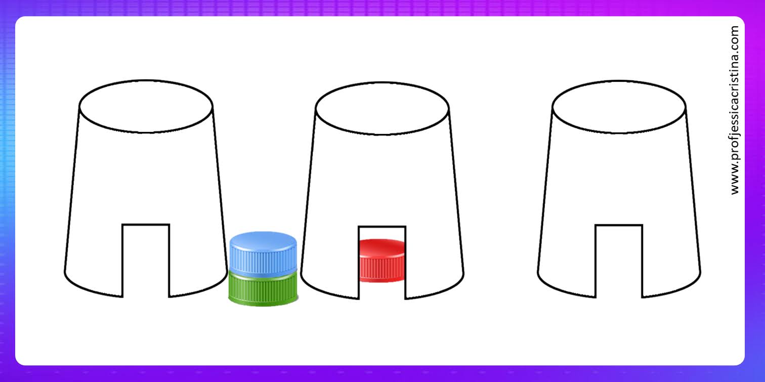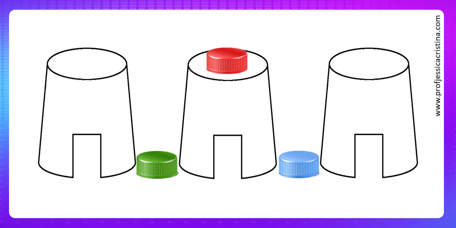 ⚠️Nível 2: Apenas 1 copo e três tampinhas. 9 cards de posicionamento. Indicado para crianças de 2 à 3 anos.