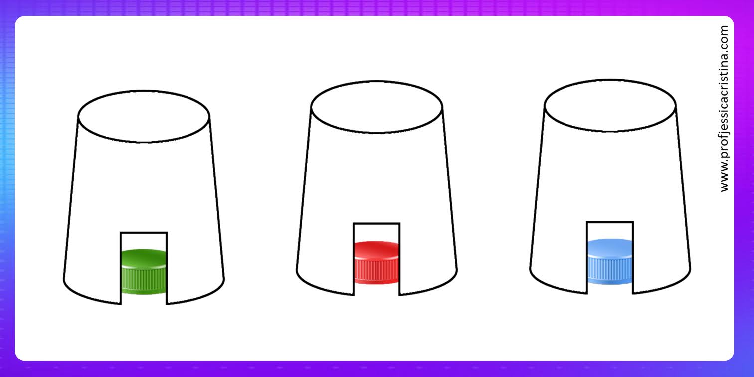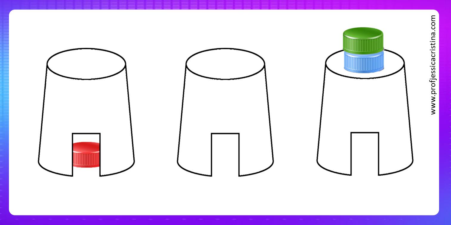 ⚠️Nível 3: Três copos e três tampinhas. 10 cards de posicionamento. Indicado à partir dos 3 anos.