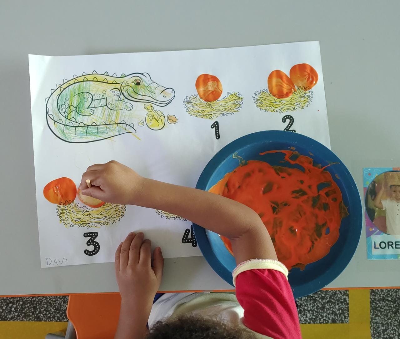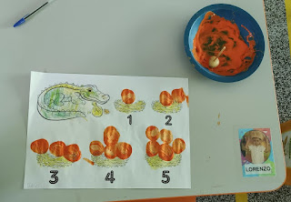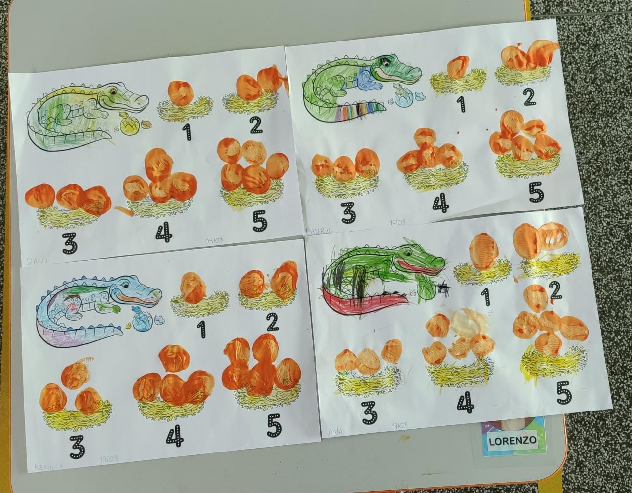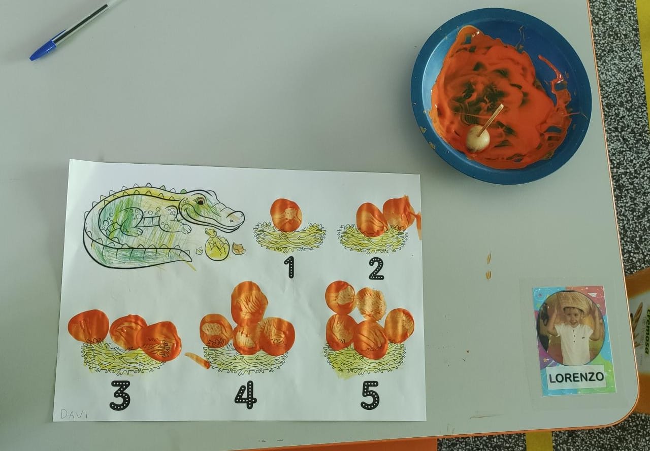 Nesta atividade utilizamos carimbo de batata para confeccionar os ovos da mamãe jacaré… Cada ninho possue um número, e a criança deve contar e carimbar a quantidade de ovos correspondente!!