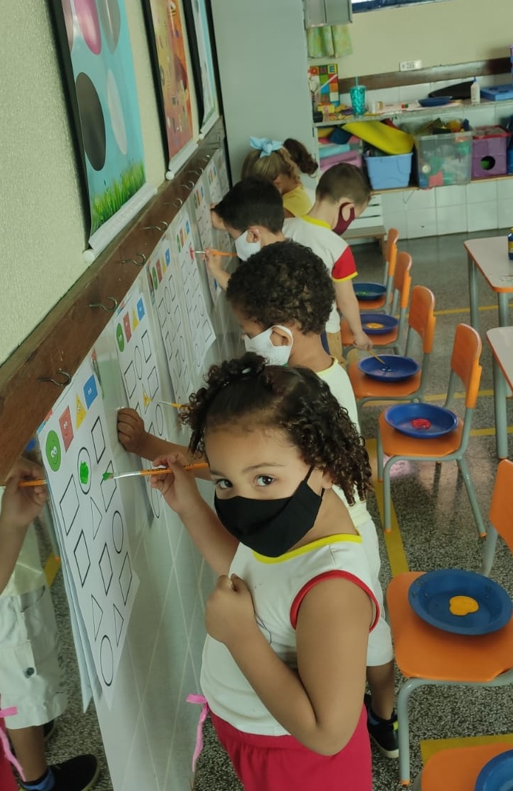 E, por aqui seguimos aprendendo muito! A pintura estimula a comunicação, a criatividade, sensibilidade e aumenta a capacidade de concentração e expressão das crianças e proporciona relaxamento. O movimento de pinça com os dedos para pegar o pincel, assim como a precisão ao pintar dentro do espaço, é essencial para aperfeiçoar as habilidades finas.